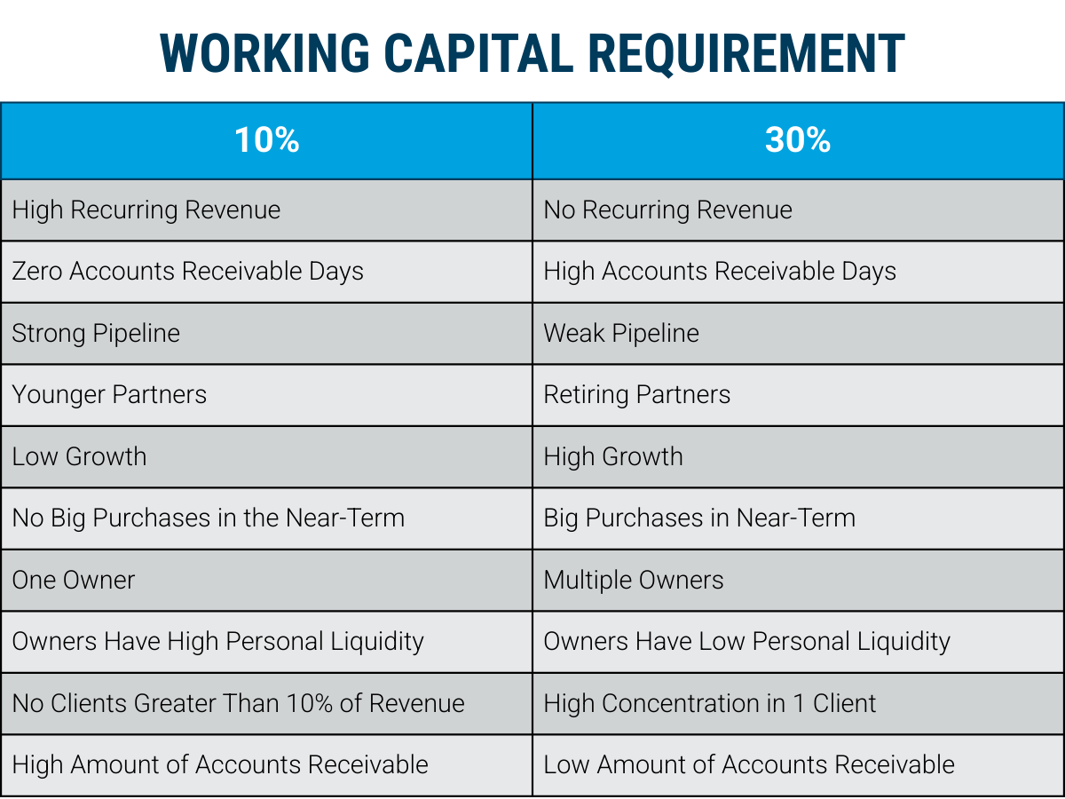 • Little-to-no recurring revenue and/or a long cash cycle and poor billing practices